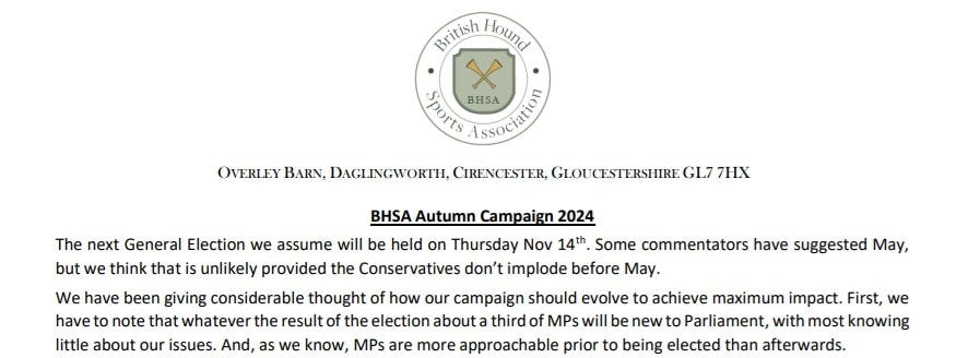 "We now call for no changes in the Hunting Act that affect either drag hunting, trail hunting or exempt hunting, all legal sporting activities. To be clear, we are not calling for repeal or amendment of the Act..."