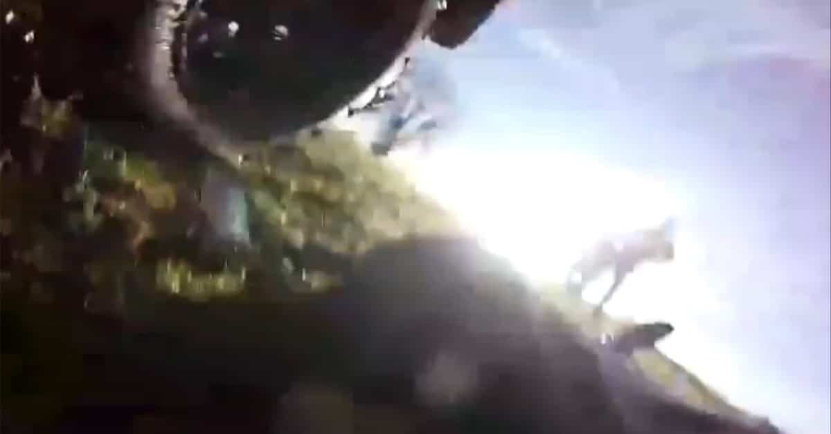A 34-second video published by the sab group taken from a body cam shows the wearer tumbling as a quad bike speeds by. A thud can be heard on the audio track as the vehicle hits the sab. The quad then speeds off into the distance.