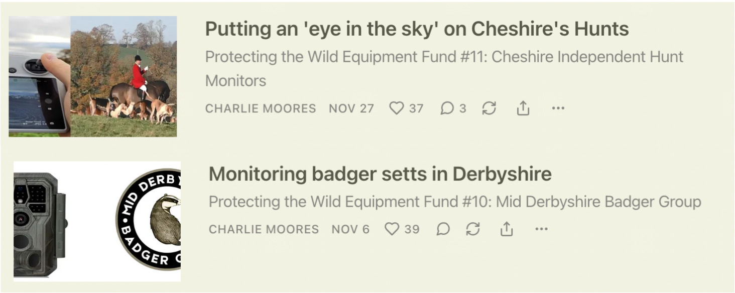 In fact 100 of you have now become paid subscribers here on Substack. It means we’re now at an amazing £885/month in our Protecting the Wild equipment fund. And to date we have supported 11 activist groups across the UK! Every single penny we receive on Substack goes directly to supporting the courageous heroes putting themselves in harm’s way to protect wildlife.
