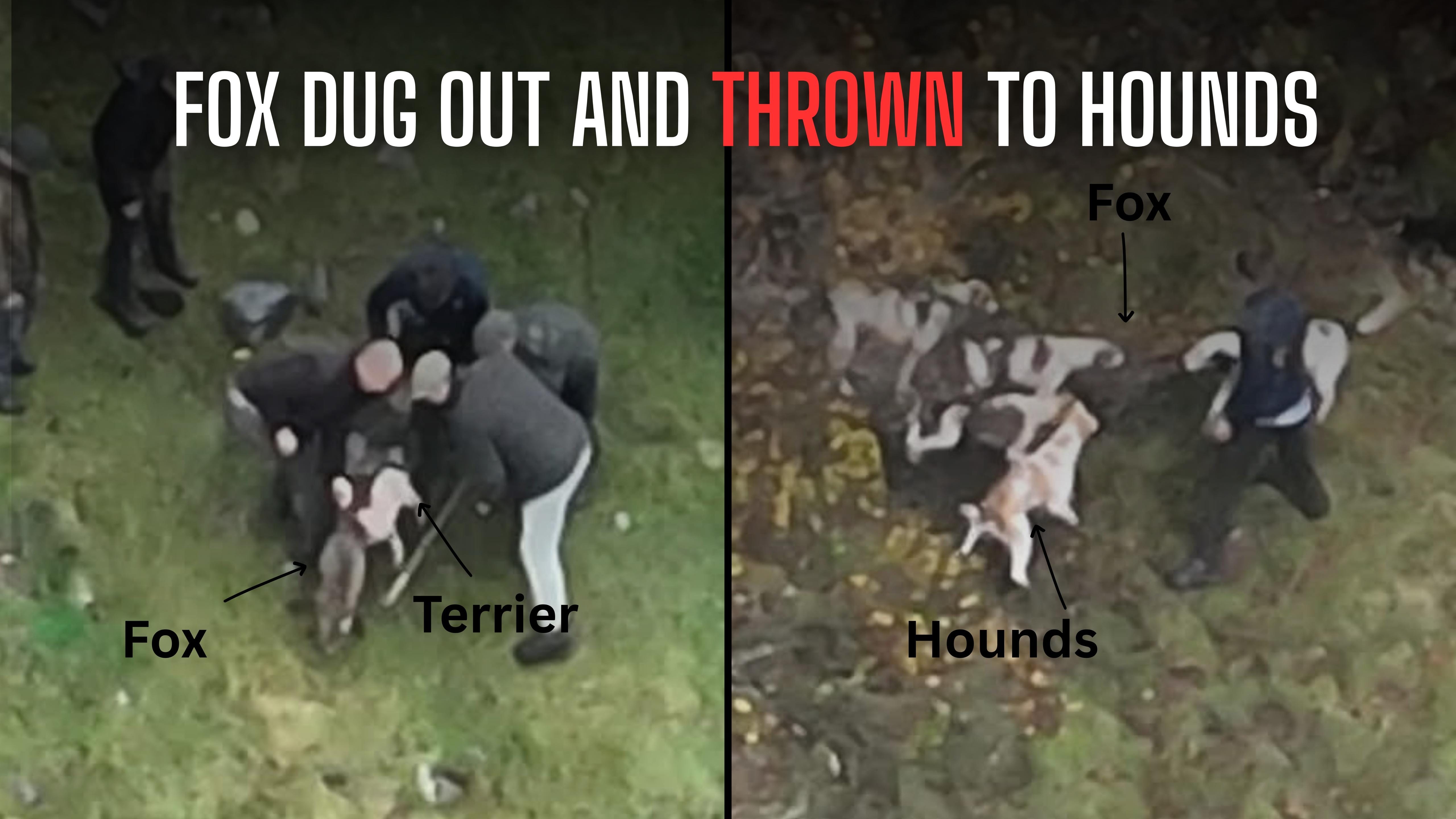 The Lake District Hunt Sabs captured harrowing footage of the Coniston Foxhounds digging out a terrified fox and throwing them to the hounds to be torn apart.