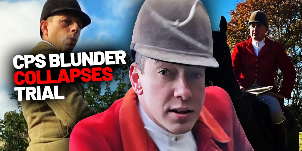 Trial of whipper-in Jamie Price, huntsman Jack Henty and Hamish Golding of the Essex and Suffolk Hunt collapses after error by Crown Prosecution Service