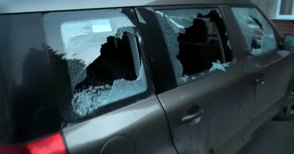 What a bunch of mindless morons picking on women and cowards targeting cars. If what ive read on the comments that 2 scumbags have been arrested i hope the plod dont turn a blind eye once AGAIN. If this had happened my neck if the woods retaliation would have been swift we dont take to cowards picking on women especially these sick twisted rats in society, hope all the victims of these scumbags are ok and next time you dial 999 your requests answered quickly dont let this cowardly act deter the bigger goal and to the scum that done it a big fat 🖕up yours you cowards..