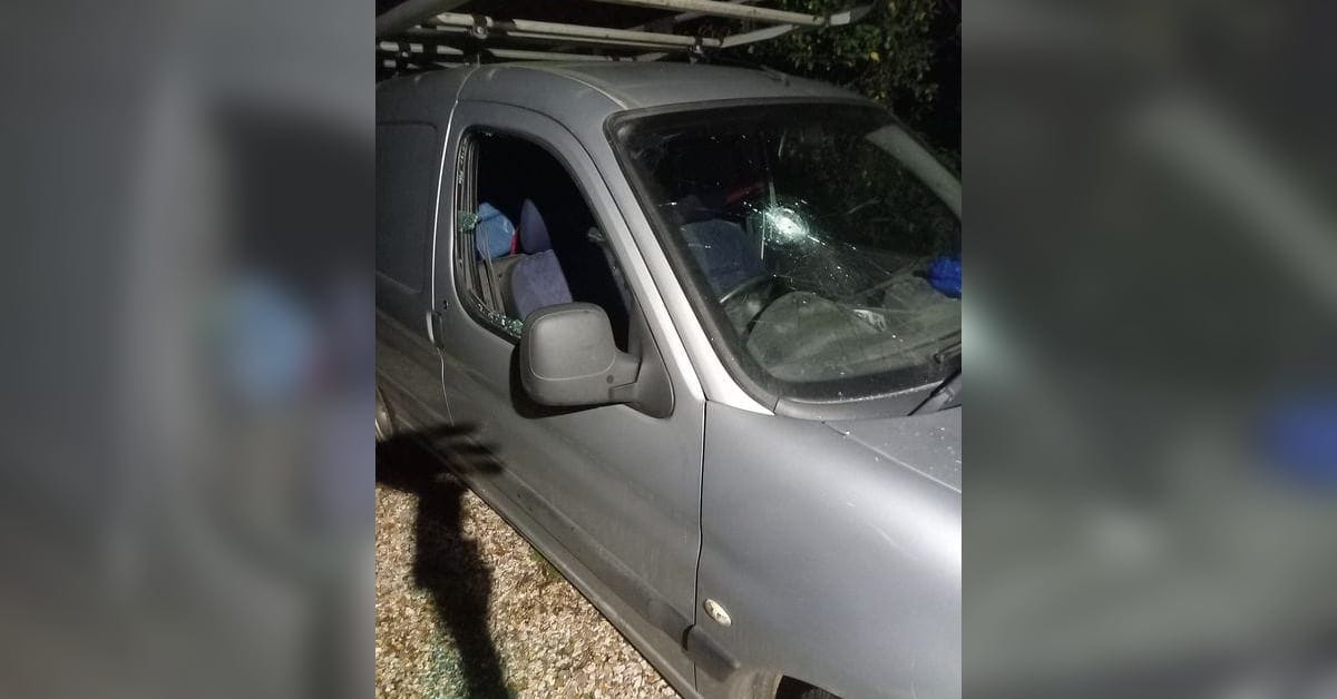 The van belonging to North Dorset Hunt Sabs with windows smashed in the violence