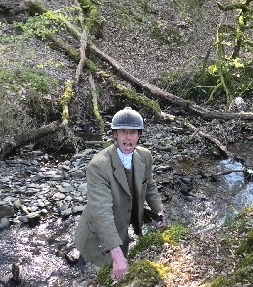 Here there was sadly no escape from death. In the stretch of river between Ball Bottom Bridge and Twitchen Mill he lost his valiant effort to escape. After being turned by supporters at Ball Bottom Bridge, he ran back downstream where he was blocked by hunt staff and lackies. With no energy left to run back uphill, he lay down in the water barely able to hold his head up."