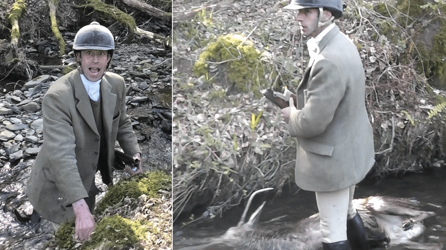 Hunter murders stag and barges hunt saboteur with loaded gun