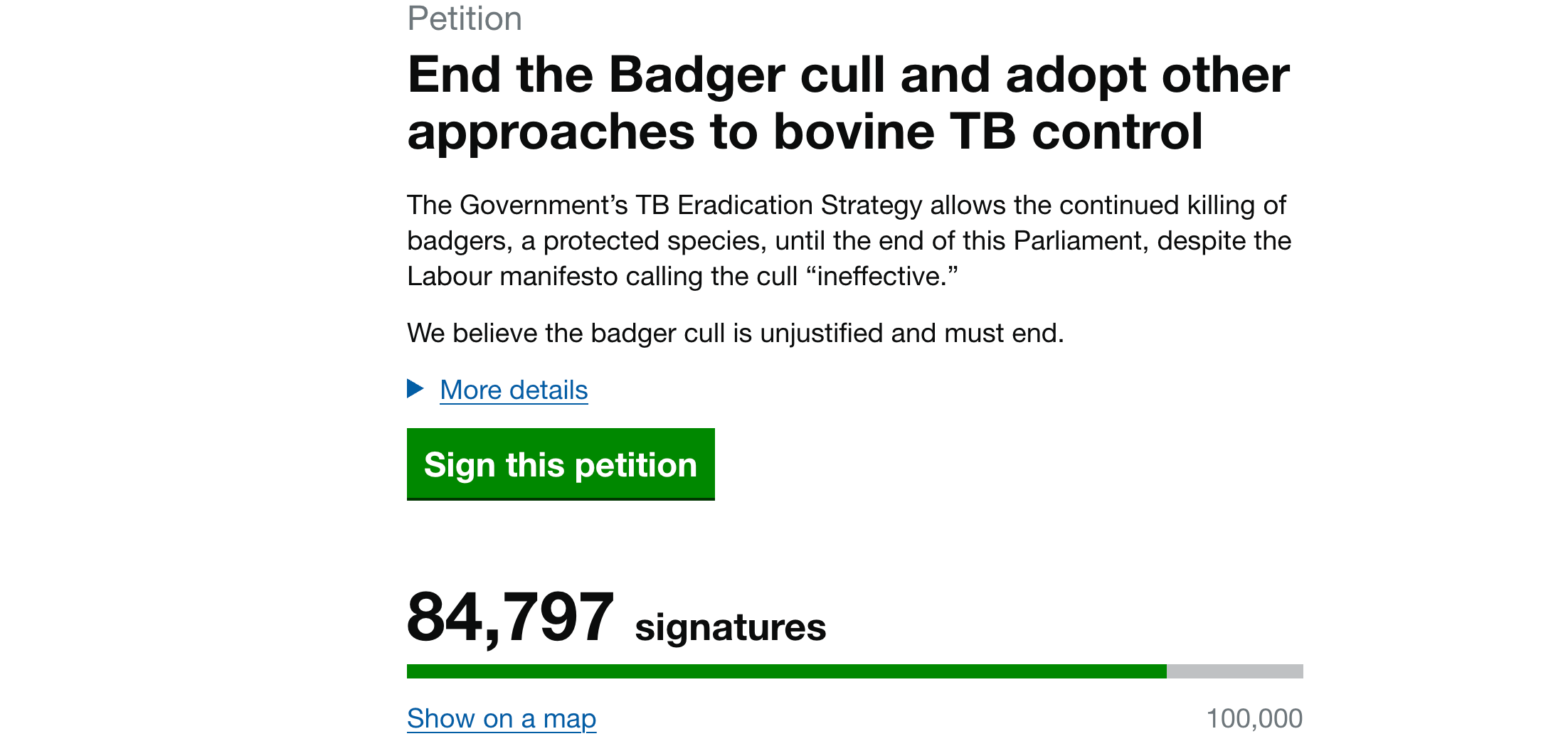 This will be a short and straight-to-the-point email — because I know many of you are probably tired of hearing us talk about the Government petition to end the badger cull. Honestly, I’m exhausted too, waking up every morning to check the numbers and hoping for a breakthrough.