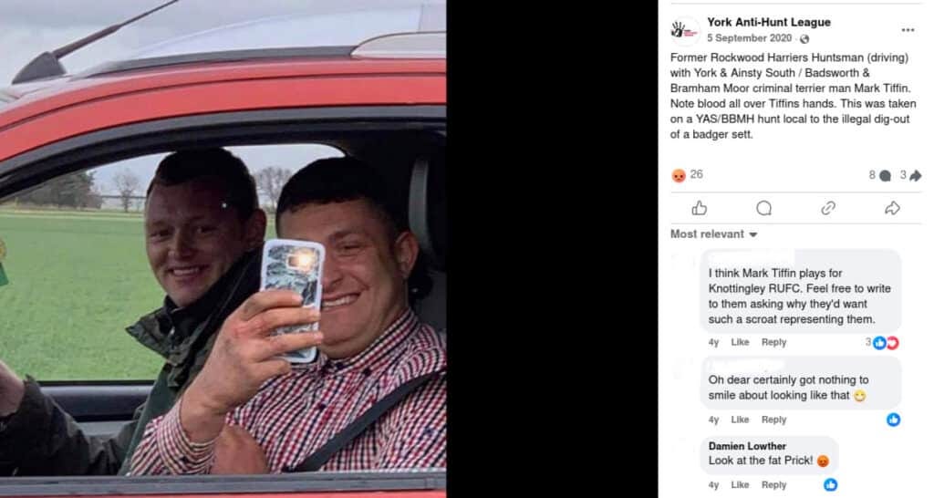 "we thought that we would share with you our ‘surprise’ to find the familiar face of Mark Tiffin, a convicted criminal badger baiter, now working as a ‘fence mender and gate opener’ (Terrier-man) for the newly combined hunts...