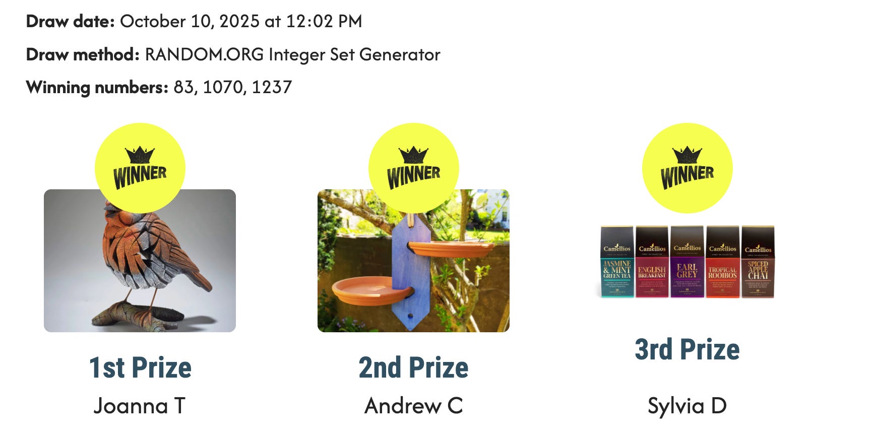 A huge well done to last month’s winners! And a massive thank you to everyone who entered as we raised just over £1,200 in the process!