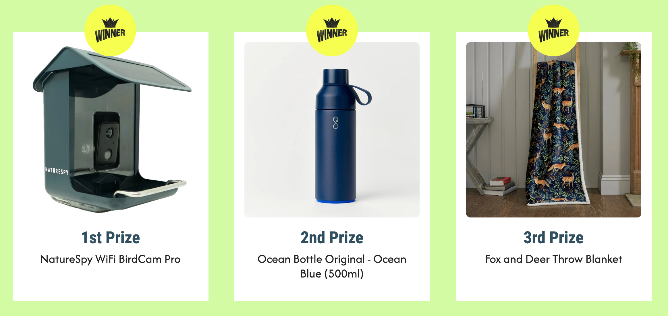 Every month we run a raffle with three ethical and wildlife-themed prizes — all in support of our work at Protect the Wild.