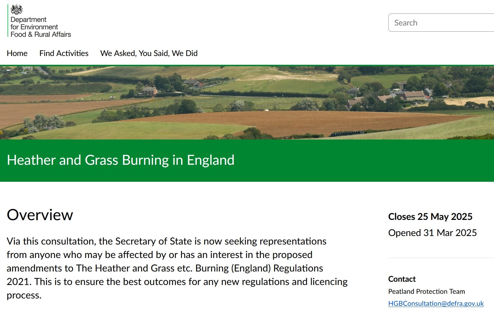 The consultation closes on 25 May 2025 and (again) can be found at https://consult.defra.gov.uk/peatland-protection-team/heather-and-grass-burning-in-england/
