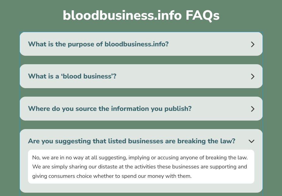 COMING SOON: bloodbusiness.info - A new project to help us make informed choices about our spending