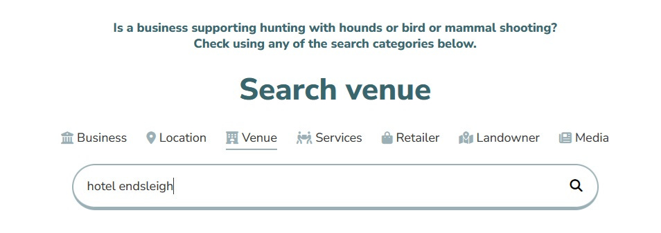 Information! What we need is the name of the business, its location (town, county, and postcode if possible), its website URL (if it has one), and some supporting ‘evidence’ (a photo of a hunt meet or shoot, or a screenshot of a webpage perhaps).