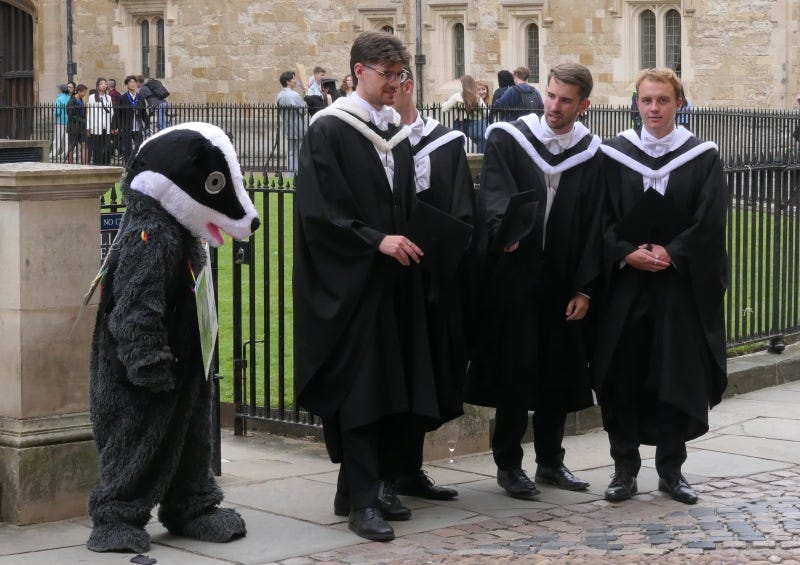Under sunny skies and humid conditions (which made wearing a furry, cumbersome badger suit very hard work indeed so kudos to Betty and the rest!) we found ourselves in the midst of graduation day gatherings and huge numbers of tourists.