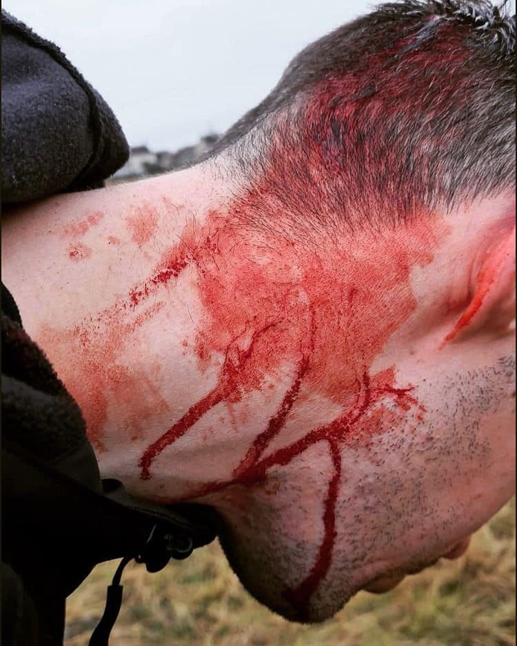 "This caused a 3cm, full thickness laceration to the scalp that required glue and stitches at hospital.”