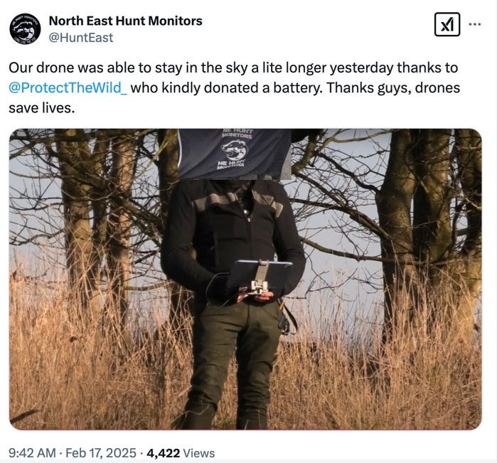 And just this week we have sent a bundle of kit including bodycams and ‘gizmos’ to Geordie Hunt Sabs. They are ‘in the post’ as we write this and we will post an update here on Substack asap! In the meantime, we highly recommend their Facebook HIT Reports which have a unique ‘Tyneside’ style and are often extremely funny…