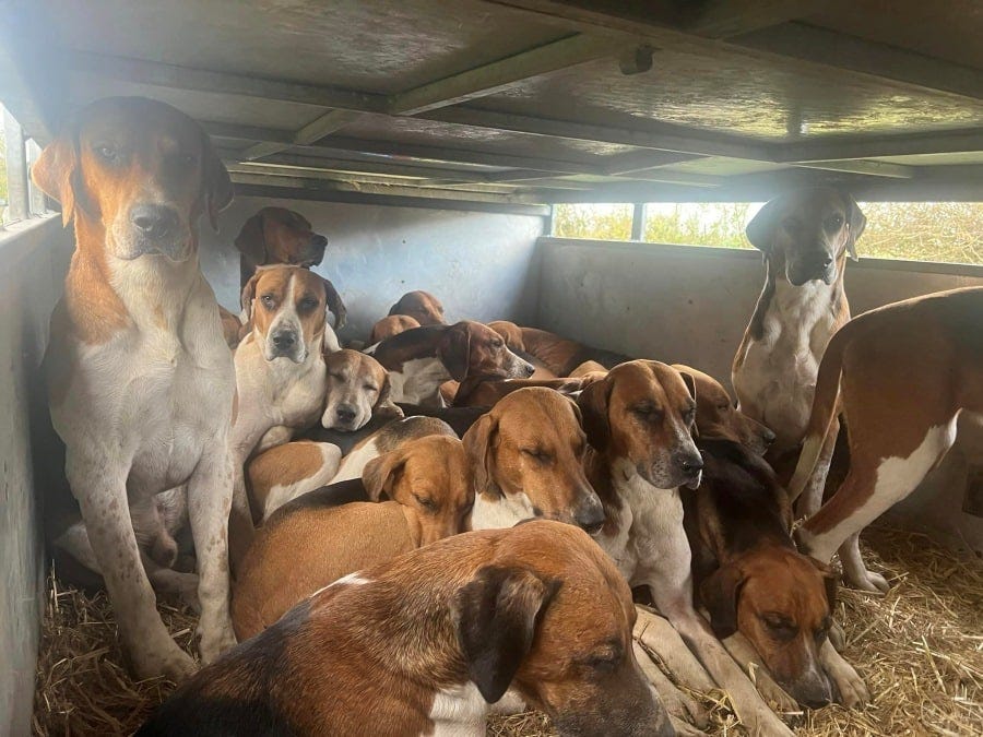 Both the hounds and the horses are the often unspoken victims of hunting, subject to gruelling days at the hands of people who see them simply as a means to an end.