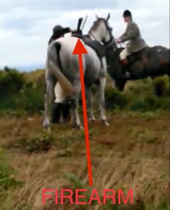 If it weren’t enough for these killers to be galloping across open access land, from one end of an SSSI to the other, illegally using dogs to chase deer until they collapse from exhaustion, they do it with a gun strapped to the saddle of their horses.
