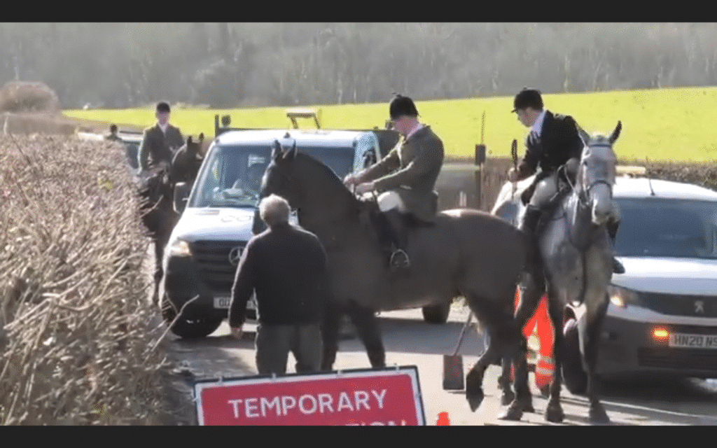 On 4 December, local media showed images provided by local hunt saboteurs of hunts causing havoc on the road.