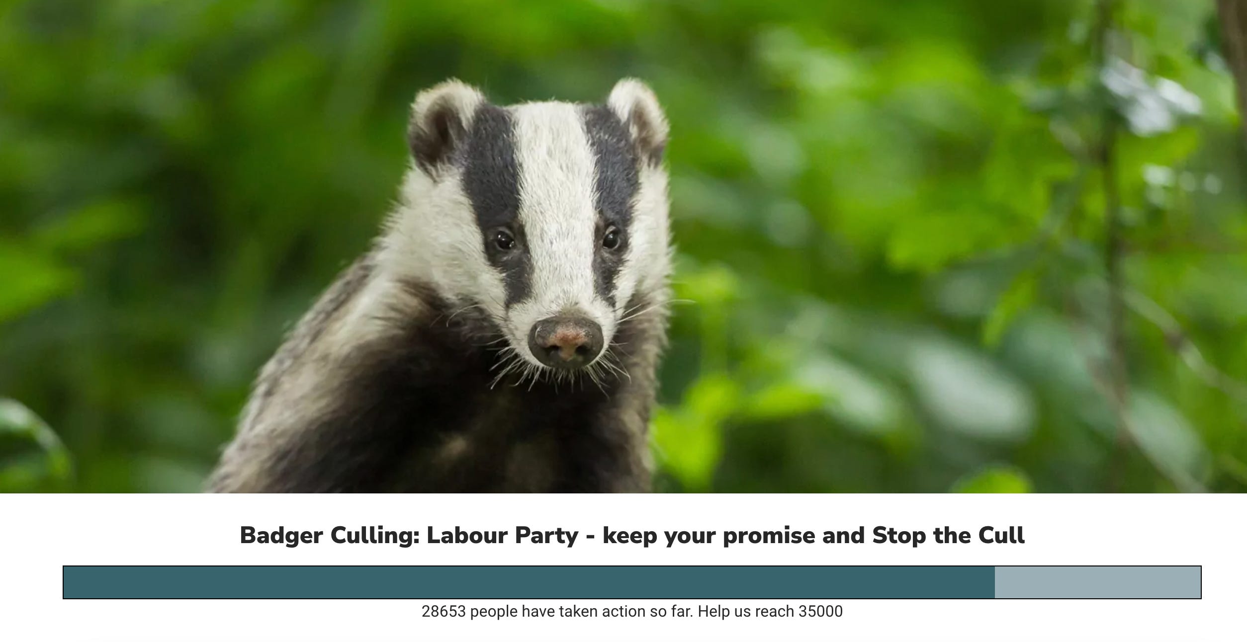 This Government campaigned on the message that they would end the badger cull. It is now up to us to ensure that they do what they promised and so every signature makes a real difference in pressuring Steve Reed MP (Defra Secretary), and Daniel Zeichner (Farming Minister) to do the right thing for wildlife.