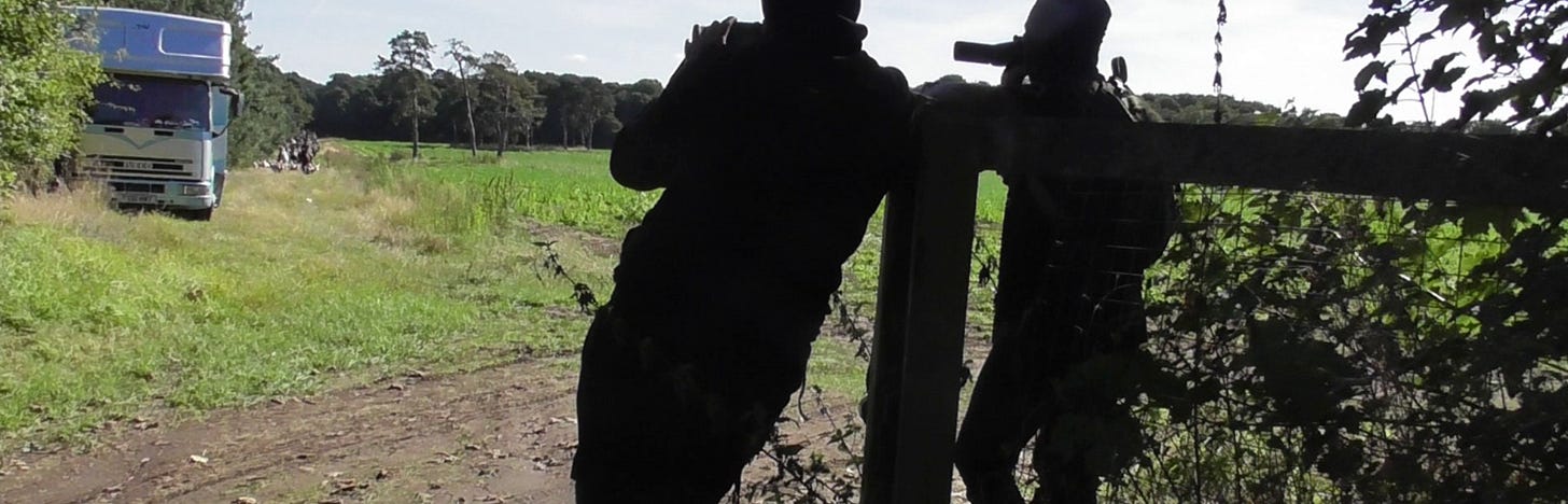We headed there along with the other groups present on the day, South Suffolk Hunt Sabs and Suffolk Action for Wildlife, and arrived first on the scene. Despite following the public footpath from the road to the wood, we’d already had the hunt’s hired goons from Colchester-based Zed Security getting up in our faces with false accusations of carrying offensive weapons. These claims were made even as they drove their quad bike along the footpath, a criminal offence under the Road Traffic Act.