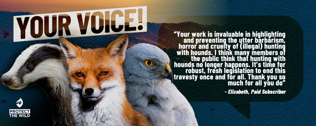 Our content is free but if you choose to take out a paid subscription you’ll be helping activists on the ground take direct action to protect wildlife. Every penny we receive tops up our Equipment Fund to support those in the field tackling wildlife crime, including hunting, raptor persecution and the badger cull. We currently have an amazing 650 of you on paid subscriptions helping us support groups from Wiltshire to Teesside. Can you help us to help even more?